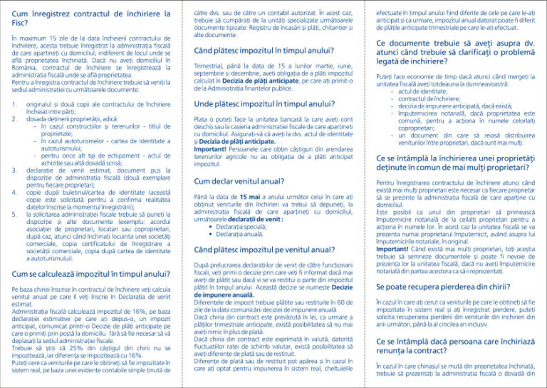 Contractul de închiriere cu opțiune de cumpărare este o soluție modernă pentru cei care își doresc să locuiască într-un anumit imobil, dar nu sunt pregătiți să cumpere imediat. Mai jos, vei găsi un document disponibil pentru descărcare, care îți va oferi toate informațiile necesare. Accesați descărcările Avantajele unui contract de închiriere cu opțiune de cumpărare …