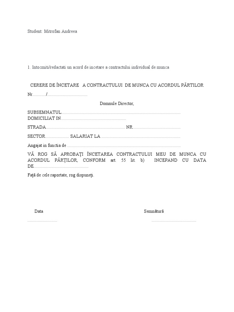 Cererea de suspendare a contractului de muncă pentru motive personale este un proces important pe care trebuie să-l înțelegi. Mai jos, vei găsi un document pe care îl poți descărca pentru a te ajuta în această situație. Accesați și descărcați Ce este cererea de suspendare a contractului de muncă? Cererea de suspendare a contractului de …